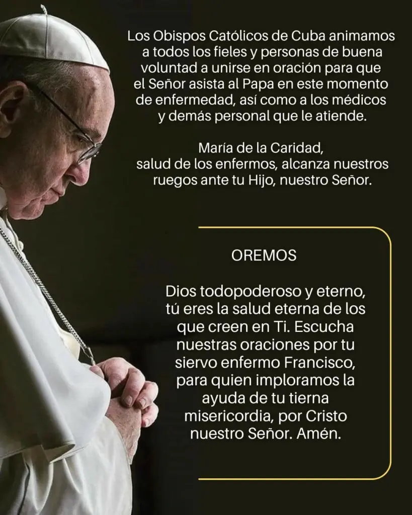 Comparten así esta súplica para que cada cubano que desee se sume y tenga presente al Papa en estos momentos en que el mundo pone su mirada atenta en su salud.