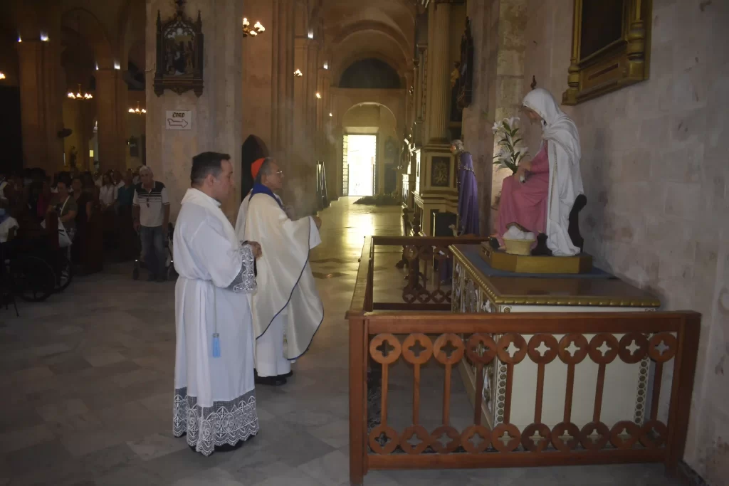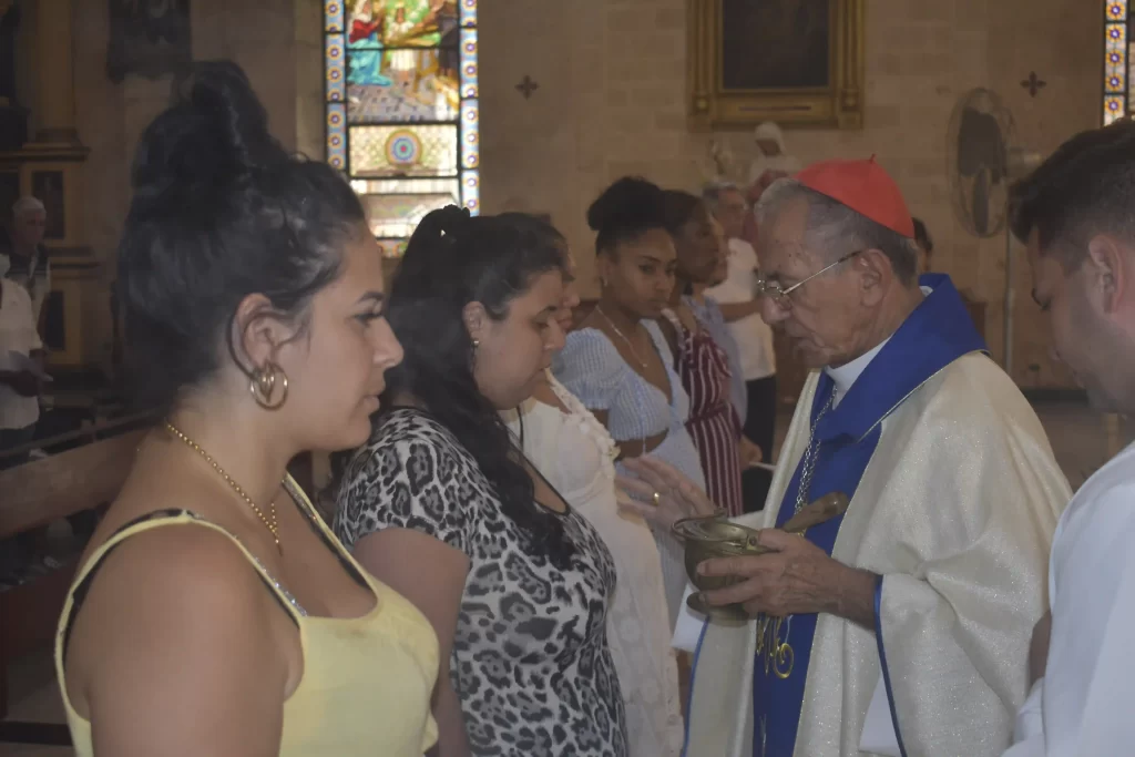 La ceremonia fue presidida por el Cardenal Juan de la Caridad García Rodríguez, Arzobispo de La Habana, junto al Padre Jorge Luis Pérez Soto. En su homilía, el Cardenal destacó la bendición de concebir un hijo como manifestación del amor de Dios y explicó el simbolismo del Ángelus, oración escogida para este día.
