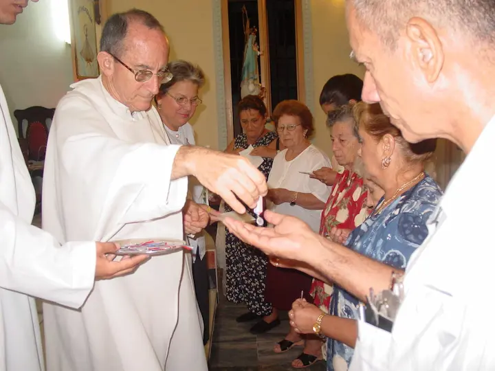 Al llegar a La Caridad antes de celebrar la Eucaristía cada día, era habitual encontrarlo en la esquina de uno de los bancos del centro del templo, cerca de la puerta lateral, listo para anotar algún difunto o para oír en confesión al que lo deseara.
