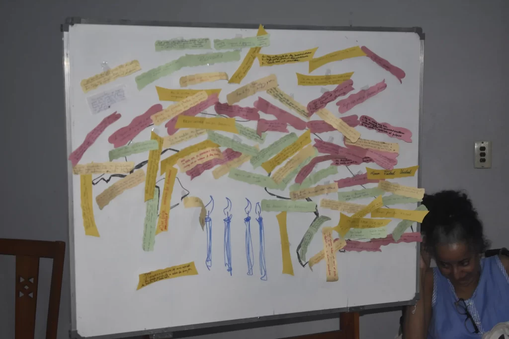 Un momento grato fue la motivación de la Hermana Iyala, religiosa de las Hijas de la Caridad, quien convidó a los participantes a pensar un poco en lo vivido, ¿a qué me invita? ¿Qué despierta en el corazón? Las palabras que uno escribió, sirvieron para cubrir la silueta de un mapa de cuba, y este simbolismo evidenció lo que hace falta para trazar el camino por el cual caminar hacia el ecumenismo «Compromiso», «amor» y «oración» – un acto que, según la Hna. Iyala, «enciende luz de esperanza para el pueblo». Dejaba el llamado de «Ante los desafíos de Cuba, la unidad no es opción: es supervivencia espiritual.
