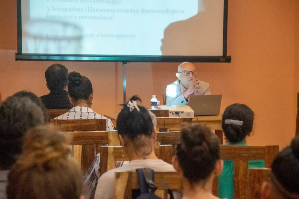 Juan Manuel Burgos, en su conferencia magistral, analizó la «Ética de la acción» desde el personalismo integral. Basándose en su obra reciente, argumentó que la ética surge de la experiencia humana y muestra el camino hacia el Bien como perfección de la persona, reinterpretando elementos filosóficos de Juan Pablo II.