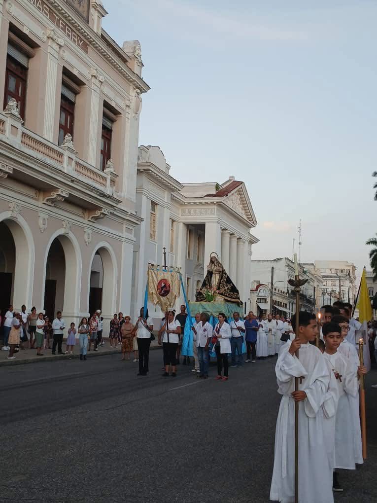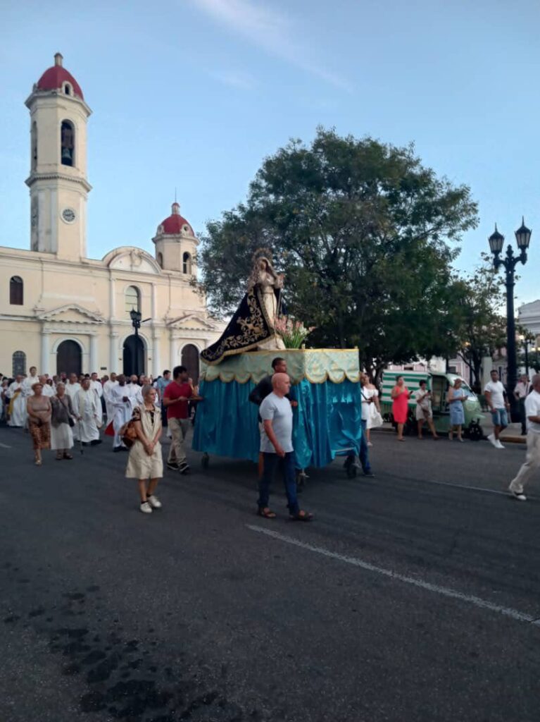 Al concluir la Eucaristía, se realizó la tradicional procesión con la imagen de la Purísima por los alrededores del parque José Martí. Fieles de todas las edades caminaron entre cantos y plegarias, expresando su devoción a la Virgen y renovando la identidad mariana que caracteriza a la Iglesia cienfueguera.