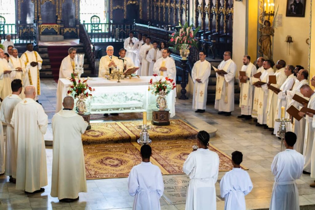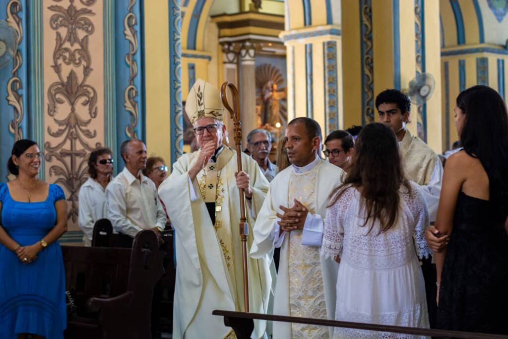 Mons. Dionisio tuvo las últimas palabras. Primero para presentar y agradecer a Mons. Osmany Massó, obispo electo de la diócesis de Bayamo-Manzanillo, pues esta fue la primera celebración diocesana después de su elección. Luego anunció al nuevo vicario general de la Arquidiócesis, el P. Leandro Naún, y al P. Gustavo Cunill como responsable en la diócesis de la Pastoral Juvenil, la Pastoral de Adolescentes y la Pastoral Vocacional. Agradeció a la coral de la Parroquia del Cobre, por su animación de la liturgia, y especialmente por el canto de después de comunión, “Acuérdate de Jesucristo Resucitado de entre los muertos”. “Yo no sé quién fue el que dio la idea, pero esa fue la única canción que yo pedí el día que me ordenaron hace casi 30 años en El Cobre… por lo tanto, gracias. Que aparte de hacerlo como siempre con mucha profesionalidad, calidad y devoción, ha sido un regalo”.
