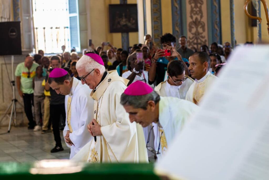 La Santa Misa fue presidida por Mons. Dionisio, Mons. Marcos Pirán, obispo auxiliar de la diócesis de Holguín, Mons. Osmany Massó, obispo electo para la diócesis de Bayamo-Manzanillo, Mons. Matjaz Roter consejero de la Nunciatura apostólica en Cuba, sacerdotes de la diócesis de Guantánamo-Baracoa, y todo el clero de la Arquidiócesis de Santiago de Cuba. Religiosas, religiosos y consagrados, y cientos de fieles de casi todas las parroquias de la diócesis, acompañaron a su pastor.
