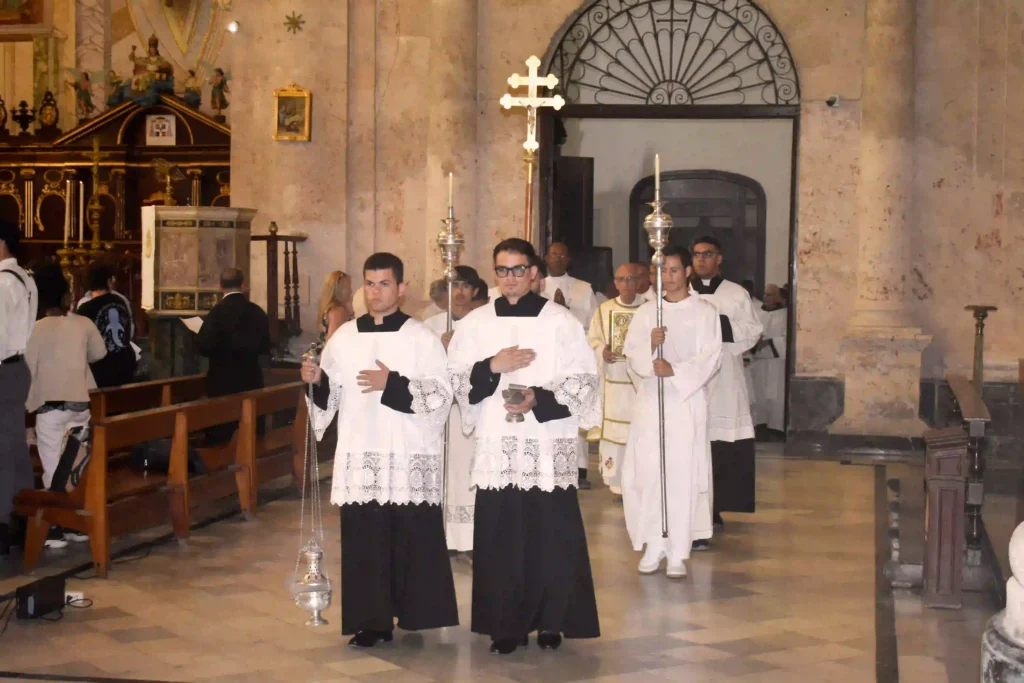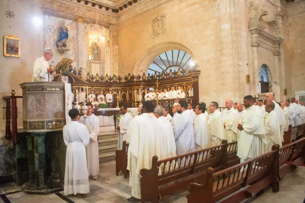 Este 26 de marzo, la Iglesia en La Habana celebró con solemnidad la Misa Crismal en la Santa Iglesia Metropolitana Catedral, presidida por el Cardenal Mons. Juan de la Caridad García, arzobispo de La Habana, junto a su obispo auxiliar Mons. Eloy Ricardo. A esta celebración litúrgica, que reviste un profundo significado eclesial, asistieron el clero de la arquidiócesis, así como numerosos religiosos, religiosas y fieles laicos.