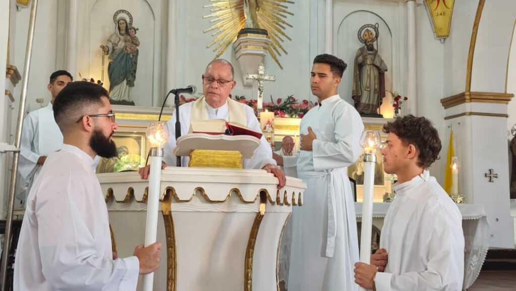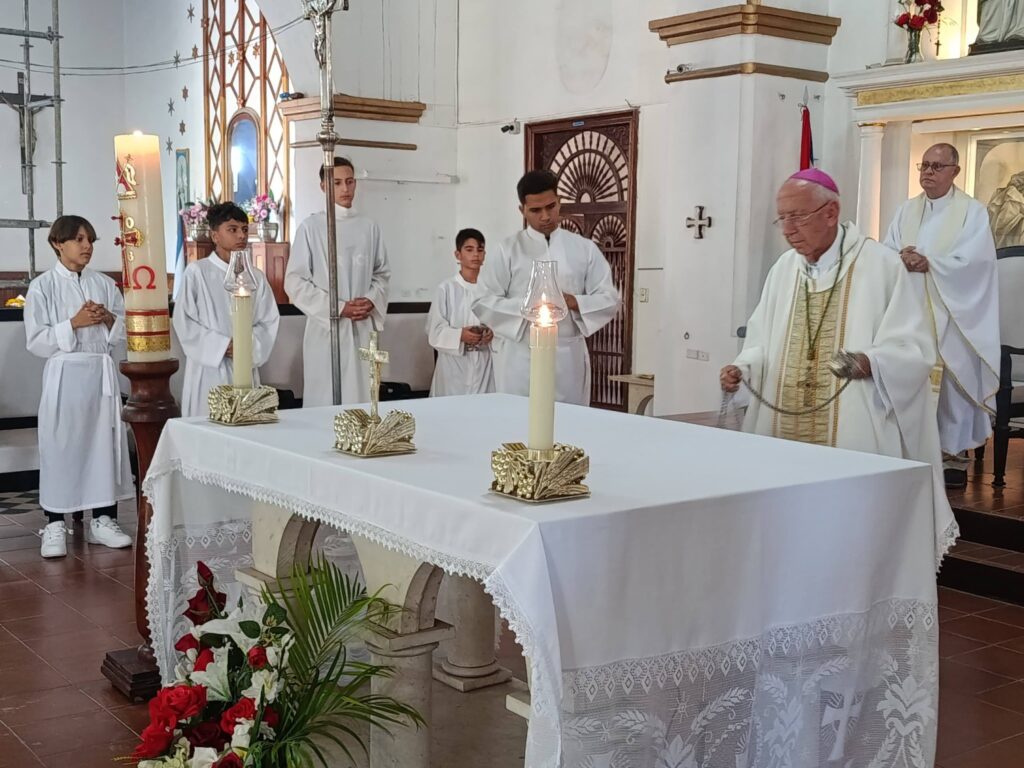 La comunidad de la Catedral de Holguín celebró este domingo su fiesta patronal en honor de San Isidoro de Sevilla. Monseñor Emilio Aranguren presidió la misa, concelebrada por el párroco y Vicario General de la Diócesis, p. Francisco Expósito. Al coincidir con el “Domingo del Buen Pastor”, las primeras palabras del obispo fueron una petición a los presentes: rezar de manera especial por los obispos, sacerdotes, seminaristas y por quienes, en lo profundo de sus corazones, acarician el llamado a la vida sacerdotal o religiosa.