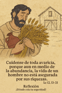 Evangelio según San Lucas 12, 13-21 “Cuídense de toda avaricia, porque aun en medio de la abundancia, la vida de un hombre no está asegurada por sus riquezas.”