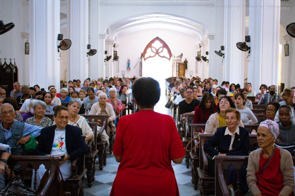 La solemnidad dio un giro festivo con el animado segmento dirigido por la Hermana Odita RAD, la Hermana María Isabel SSJ, Alejandro Ariosa y un grupo de jóvenes de la comunidad de los Escolapios de Guanabacoa. Los cantos y bailes que impulsaron no eran un simple entretenimiento, sino la expresión de una fe alegre, de un servicio que brota del corazón agradecido y se celebra en comunidad. Las palmas y las voces elevadas llenaron el templo, derritiendo cualquier formalidad y recordando que la verdadera caridad nace de un corazón alegre.