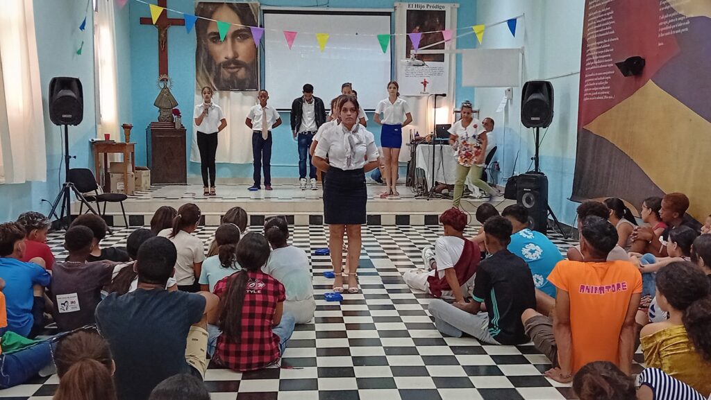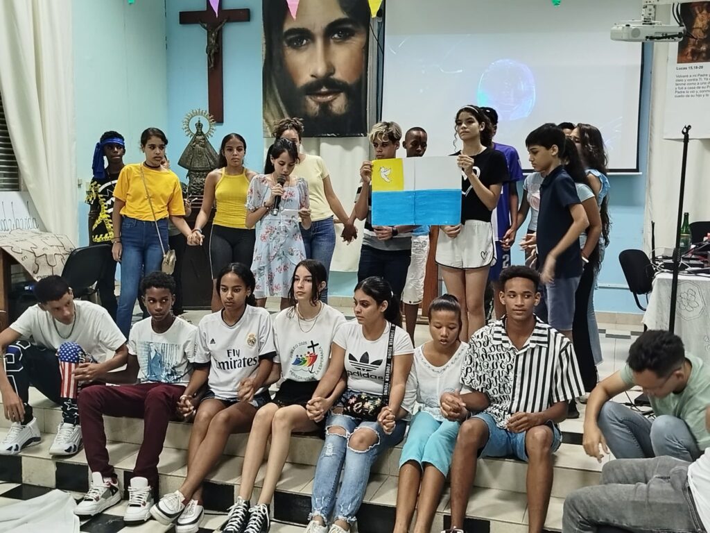 Bajo el lema: para Dios todo es posible, juntos vivieron momentos de entrega, oración y juegos. Prevaleciendo la alegría, como verdaderos «Peregrinos de Esperanza». Este compartir estuvo a la altura de estos tiempos dónde los adolescentes experimentaron nuevas y profundas experiencias de fé. La primera noche peregrinaron hasta los pies de la Caridad rezando el Rosario Misionero. Una intención especial por cada continente, por sus sueños, dolores y sufrimientos. En particular, rezaron por esos países que hoy cargan el dolor por la guerra. Aunque se hizo una intención profundamente marcada por el pueblo cubano, por los que están y por los que un día se nos fueron.
