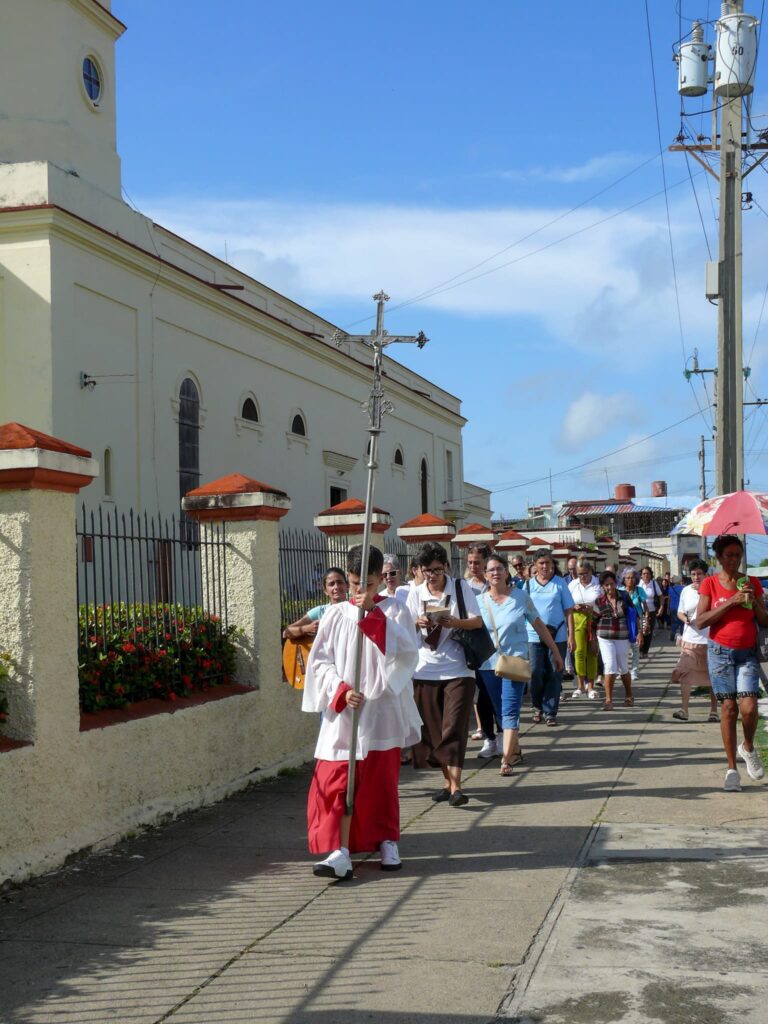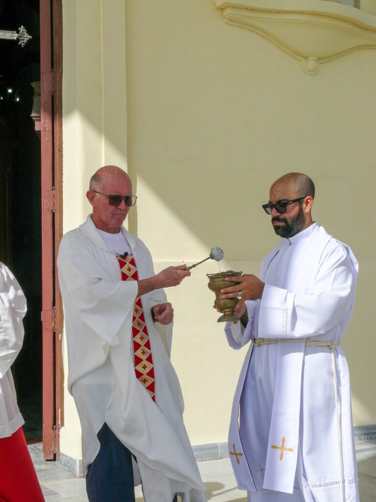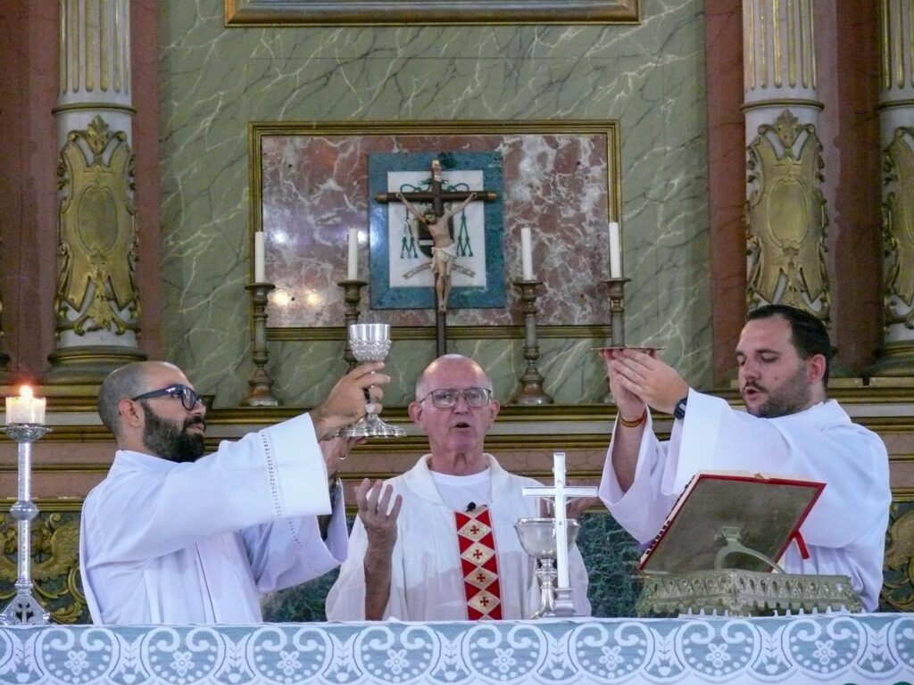Luego de una pequeña peregrinación hasta el atrio de la catedral, donde se realizó el Acto Penitencial, entramos al templo para continuar la celebración Eucarística. La Misa fue presidida por el P. Antonio, también de la Comunidad Marianistas y concelebrada por el P. Alfredo Martínez, Vicario de la Catedral y el P. Arturo, sacerdote puertorriqueño, recién llegado a la Diócesis.