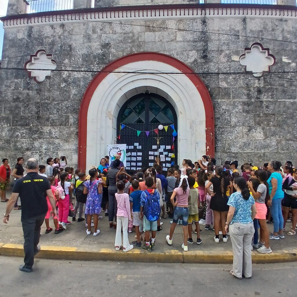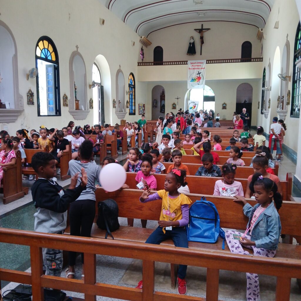 En la mañana de hoy se ha celebrado en nuestra parroquia el «Jubileo de los Niños » con la participación de las comunidades de Cabañas , Quiebra- Hacha, Mariel , La Boca y Guanajay . Con la presencia de más de 130 niños y 15 catequista de la zona , las Madres Escolapias , el P.Daniel y nuestro párroco el Pbro.Simon.