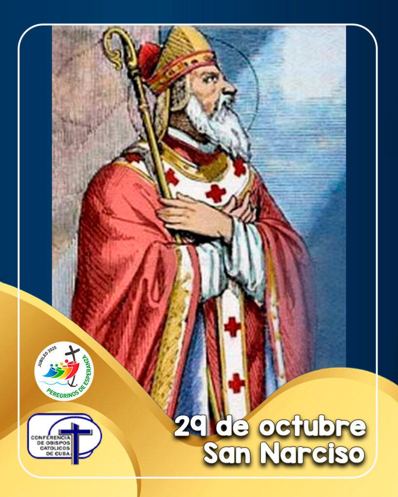 Su festividad se celebra cada 29 de octubre y es recordado como modelo de humildad, paciencia y fe. Además de San Narciso, el santoral de este día incluye otros santos y beatos como San Gaudencio de Brescia, San Honorato de Vercelli, San Zenobio, San Dodón y la Beata Chiara Luce Badano. Para los devotos, es un día propicio para pedir sabiduría, fortaleza espiritual y perseverancia en la fe, siguiendo el ejemplo de vida y dedicación de San Narciso.