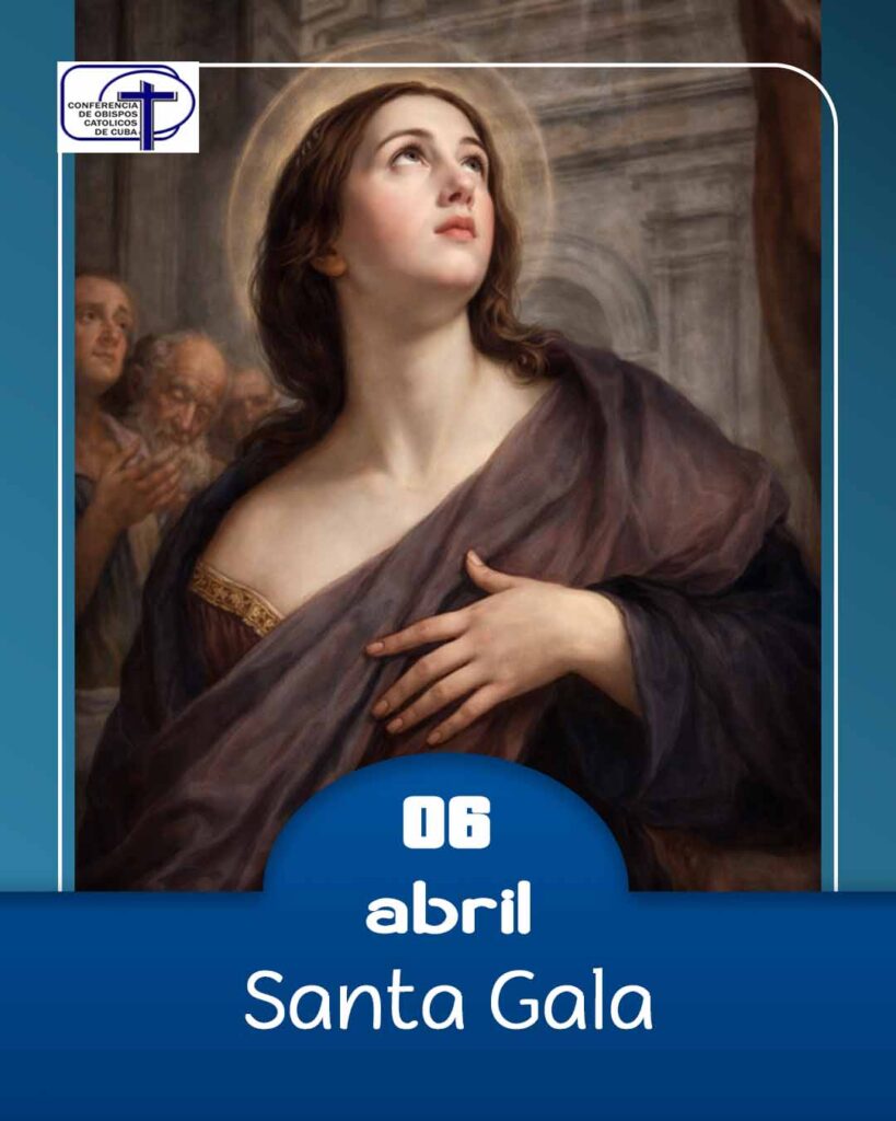 Como recuerda el Martirologio Romano sobre la santa del día: «En Roma, Santa Gala, hija del cónsul Símaco, la cual, al fallecer su cónyuge, vivió cerca de la iglesia de San Pedro durante muchos años, entregada a la oración, a las limosnas, a los ayunos y a otras obras santas, y cuyo felicísimo tránsito fue descrito por el papa san Gregorio Magno (s. VI)».